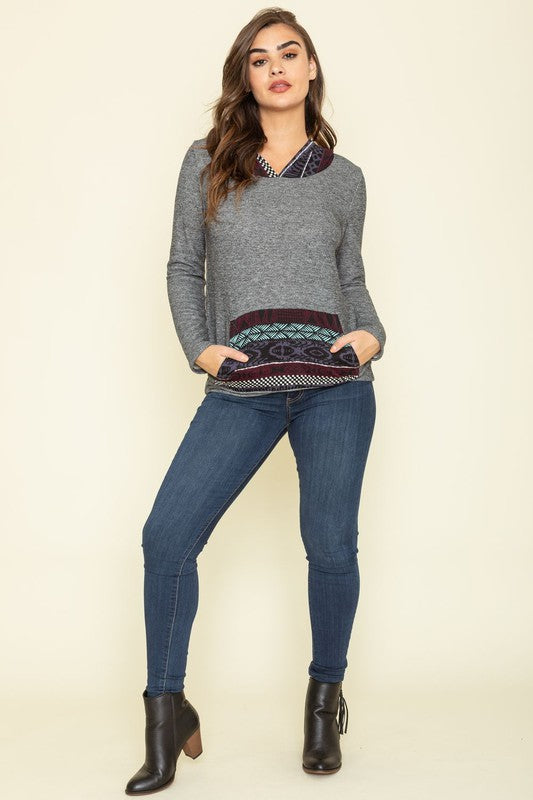 BiBi Raw Edge Detail V-Neck Sweater Hoodie