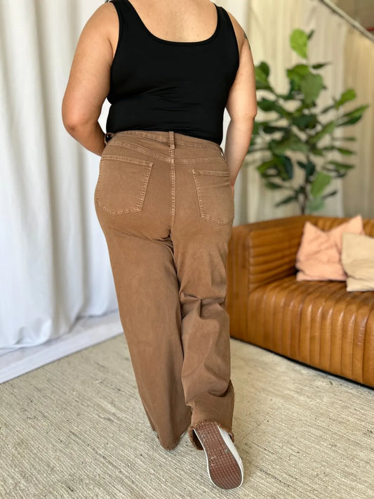RFM Full Size High Rise Garment Dye Wide Leg Jeans